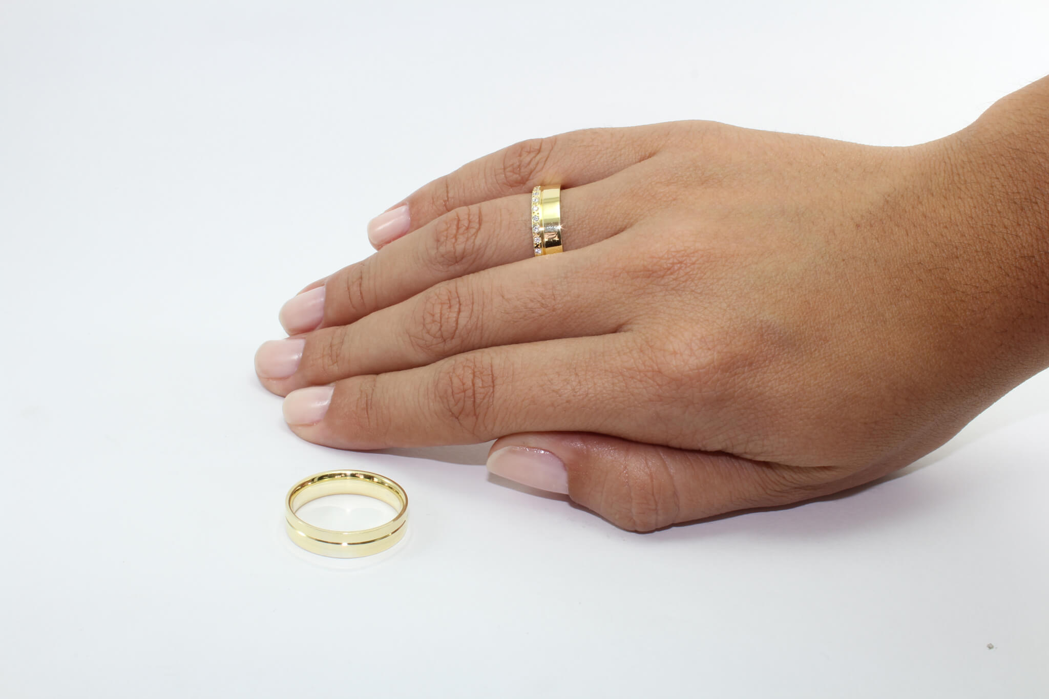 Par de aliança de casamento e noivado em ouro 18 quilates